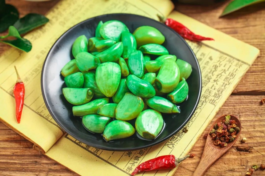 此外,全國各地還有做臘八面、泡臘八蒜、曬臘八豆腐等食俗。相傳北方之前有一些不產或少產大米的地方,人們不吃臘八粥,而是吃臘八面。泡臘八蒜,即將蒜瓣去掉老皮,浸泡在醋中,到了過年搭配餃子吃,是北方尤其華北地區的一個習慣。民間還有“蒜”與“算”字同音,商戶要在這天算清收支盈虧的說法。